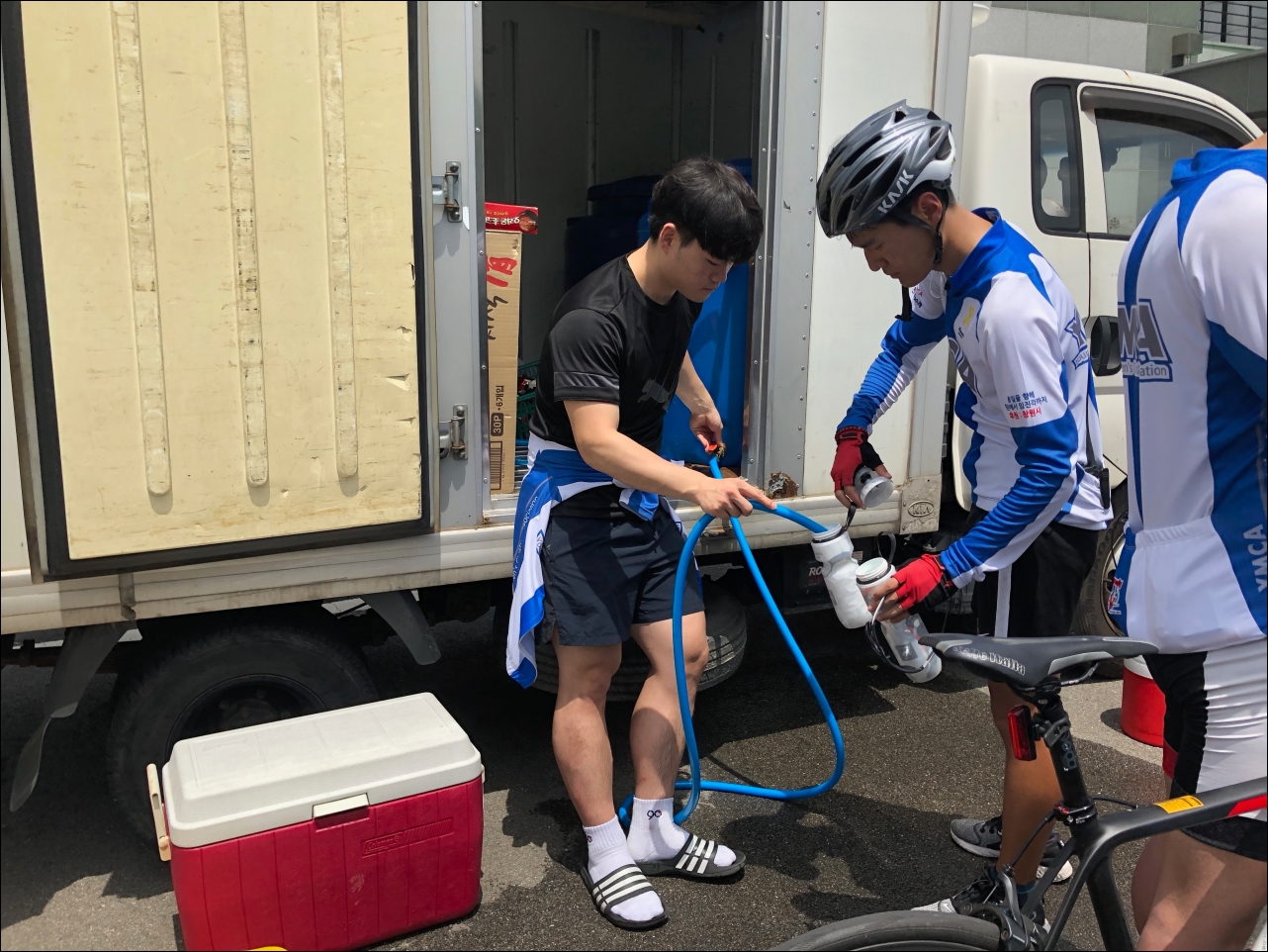 이런 말씀을 드리면, 자전거에 부착된 물병에 물을 담마 마시면 되는데 왜 생수를 사서 먹었냐고 하시는 분도 계실텐데요. 자전거에 부착된 물병을 활용하지 못하는 것은 안전 때문입니다. 평소에는 자전거에 부착된 물병을 사용하지만, 국토순례 기간 동안에는 참가자들에게 물병 사용을 금지 시킵니다. 이유는 두 가지입니다.