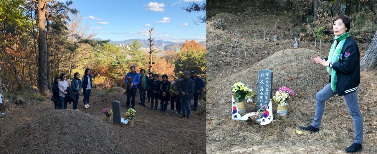 박차정 여사의 묘소를 돌보고 사람들을 이끌고 조선의열단 김원봉 장군의 막내 여동생을 위로하고, 해마다 중국 태항산까지 독립운동가들의 삶을 소개하러 다니며, 사람들이 부르는 곳마다 달려가 열정적인 강의로 조선의열단과 밀양 독립운동사를 강연하고 있었습니다.