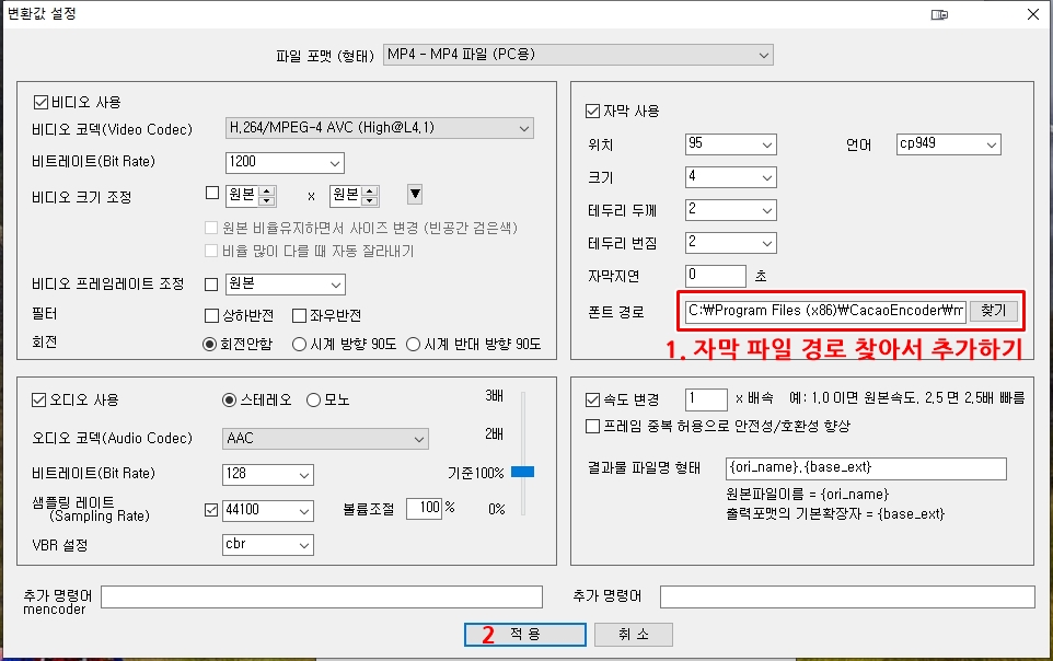 1. 자막 파일이 들어 있는 경로를 찾아주고 <적용>을 눌러서 설정을 마무리하면 됩니다.