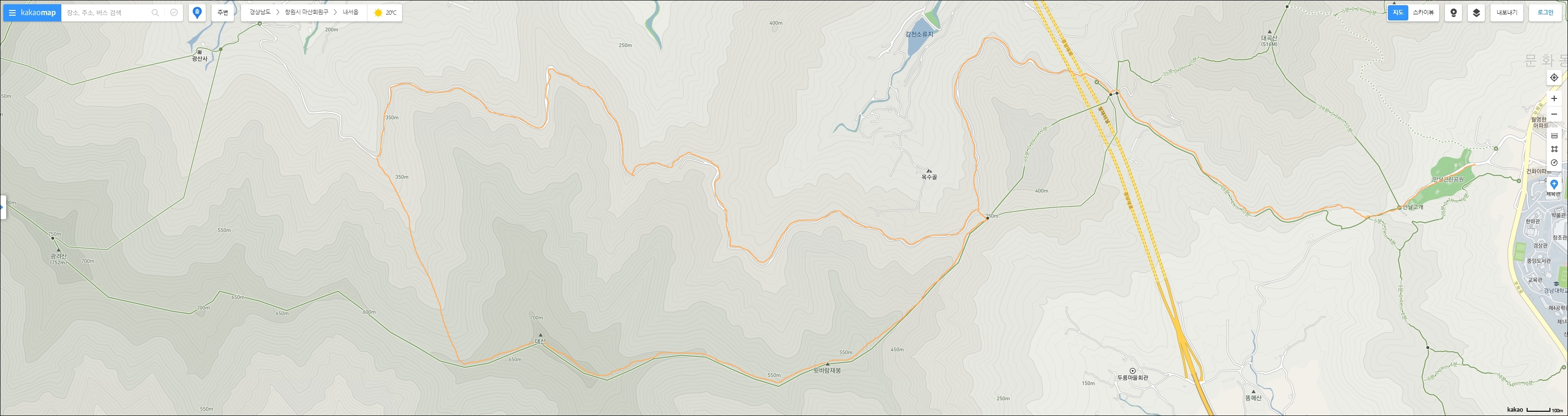 임도를 따라 7~8km를 더 걸어서 만날재 주차장까지 내려왔습니다. 스마트폰 어플에 기록이 제대로 되지 않아 인터넷 지도를 놓고 거리를 측증해보니 대략 15km 정도는 걸었겠더군요. 산길 반, 임도 반이었지만 제법 많이 힘들었습니다. 특히 쌀재에서 만날재까지 내려가는 마지막 2km 시멘트 길이 가장 힘들었습니다.