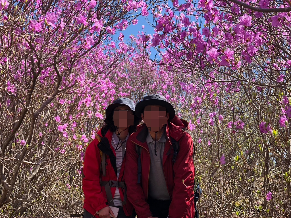 대산 진달래 군락은 기대보다는 조금 아쉬웠습니다. 4월 첫 주말에 만개할 것이라는 택시 기사님의 예측이 빗나갔기 때문입니다. 아무래도 3월 마지막 주말에 꽃이 활짝 피었던 것 같더군요. 제가 갔을 때는 꽃이 많이 떨어지고 벌써 잎이 나고 있었답니다. 활짝 꽃을 피웠을 때는 진달래 꽃 터널이 장관을 이루었겠더군요. 그 아름다운 꽃은 보려면 내년을 기약할 수 밖에 없겠더군요. 절정의 진달래를 못 보긴 하였지만, 그래도 진분홍 꽃잎이 여전히 많이 남아 있어서 봄의 정취를 느끼기엔 부족함이 없었습니다.