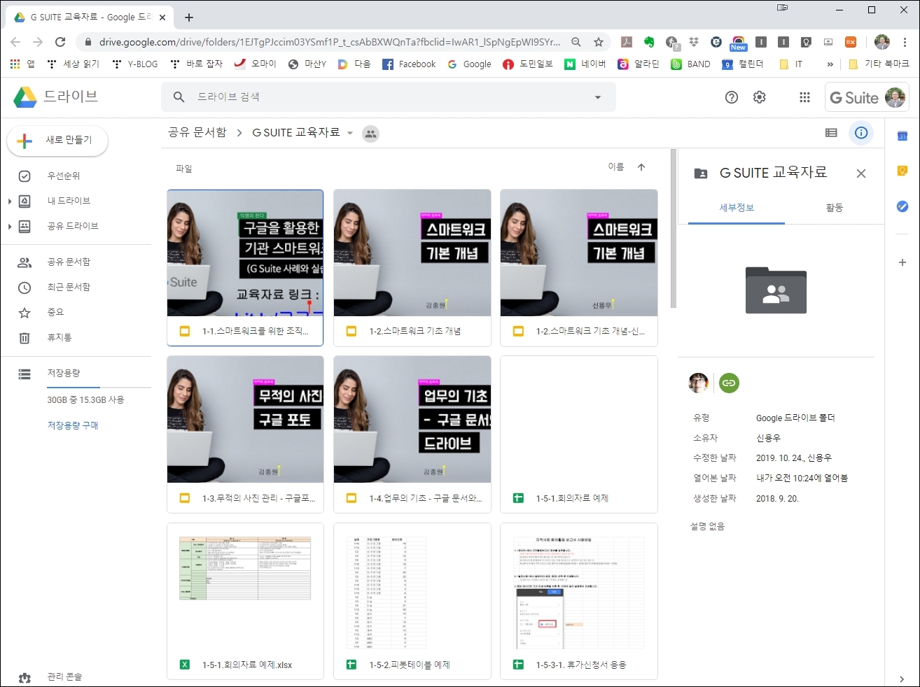 신용우 선생님의 G-suite 교육자료 공유 드라이브와 페이스북 <비영리 구글 사용자 그룹>에 올라오는 앞선 경험자들의 공유 자료를 잘 활용하시기 바랍니다.