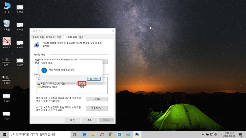 윈도우10 복원 지점 만들기