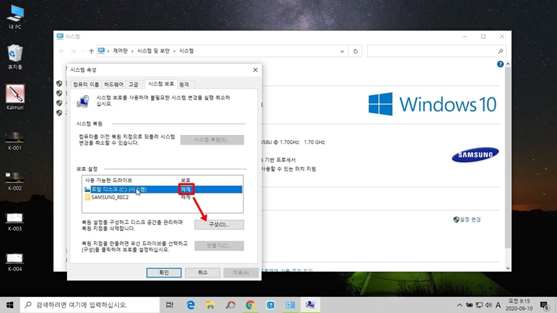 윈도우10 복원 지점 만들기