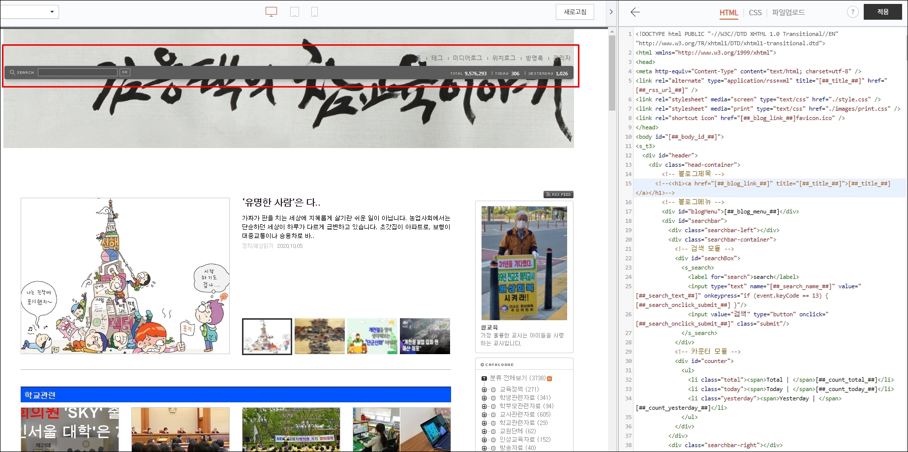 위 사진처럼 블로그 관리자-스킨 변경-스킨 위자드 편집 화면으로 가신 후에,