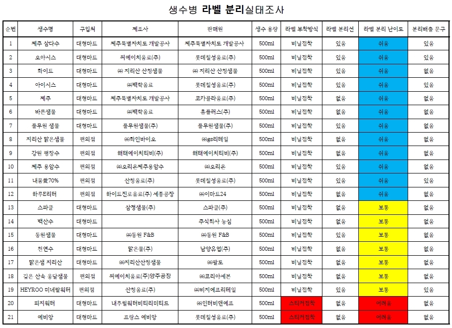 라벨 분리 얼마나 쉽게 되나? 조사해 봤더니...수입 생수 2종 분리 어려워