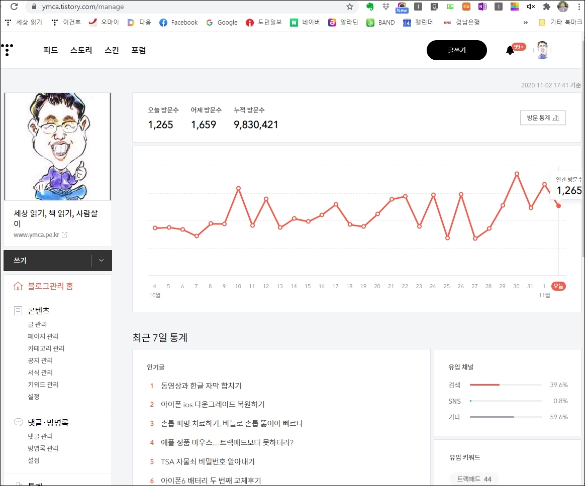 최근들어 제 티스토리 블로그 방문자 숫자가 늘어나고 있습니다. 무슨 일인지 궁금하여 티스토리 유입 경로 등을 자세히 살펴봤지만 이유를 정확히 파악하지는 못하였습니다. 다만 카카오가 티스토리와 카카오 로그인 계정을 통합하면서 뭔가 변화가 일어나고 있는 것이 아닌가 하고 짐작만 하였을 뿐입니다.