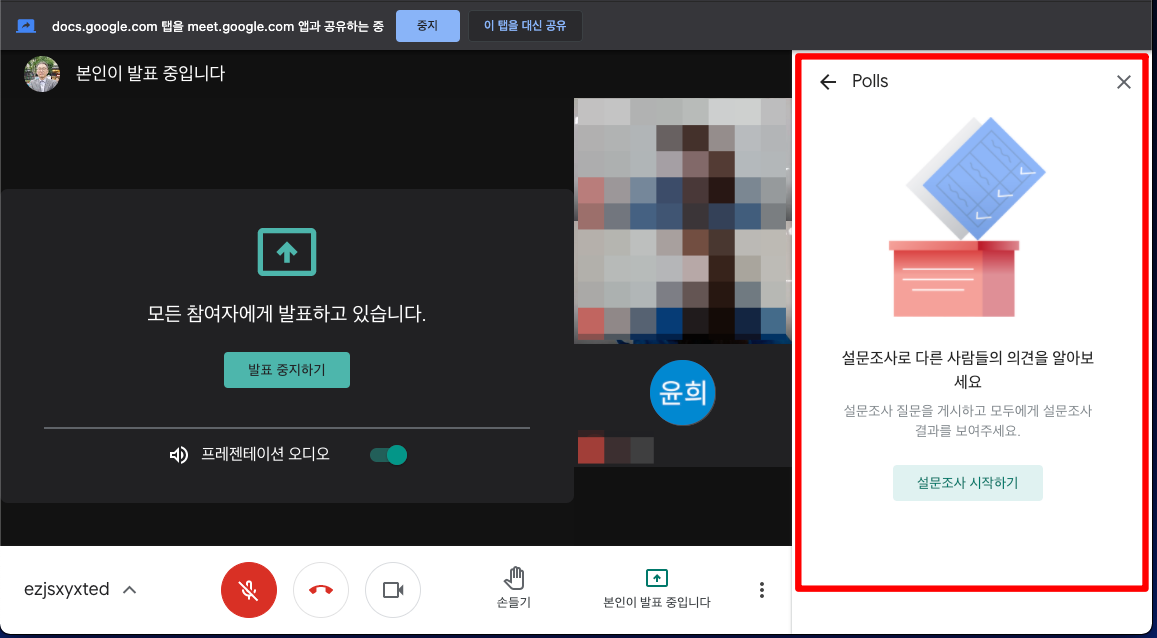 이런 기능들을 잘 활용하면 구글미트를 활용하면 어렵지 않게 온라인-원탁 토론도 진행할 수 있을 것 같습니다. 남은 것은 인터넷 버퍼링이 생기지 않도록 하는 것이 문제인 듯 합니다.