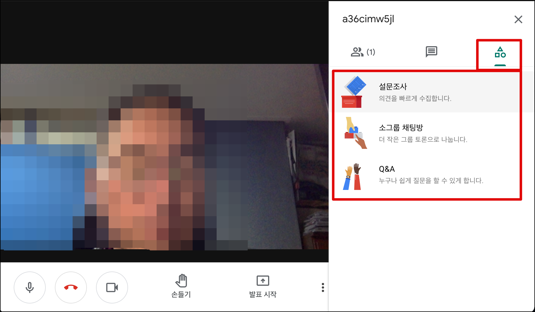 구글 미트에 구글이 원래 서비스하던 <설문조사>기능이 포함되어 아주 편리하기는 합니다만, 회의 주최자를 쉽게 바꾸거나 권한을 양도할 수 없는 것으 치명적인 단점이고 불편함 입니다.