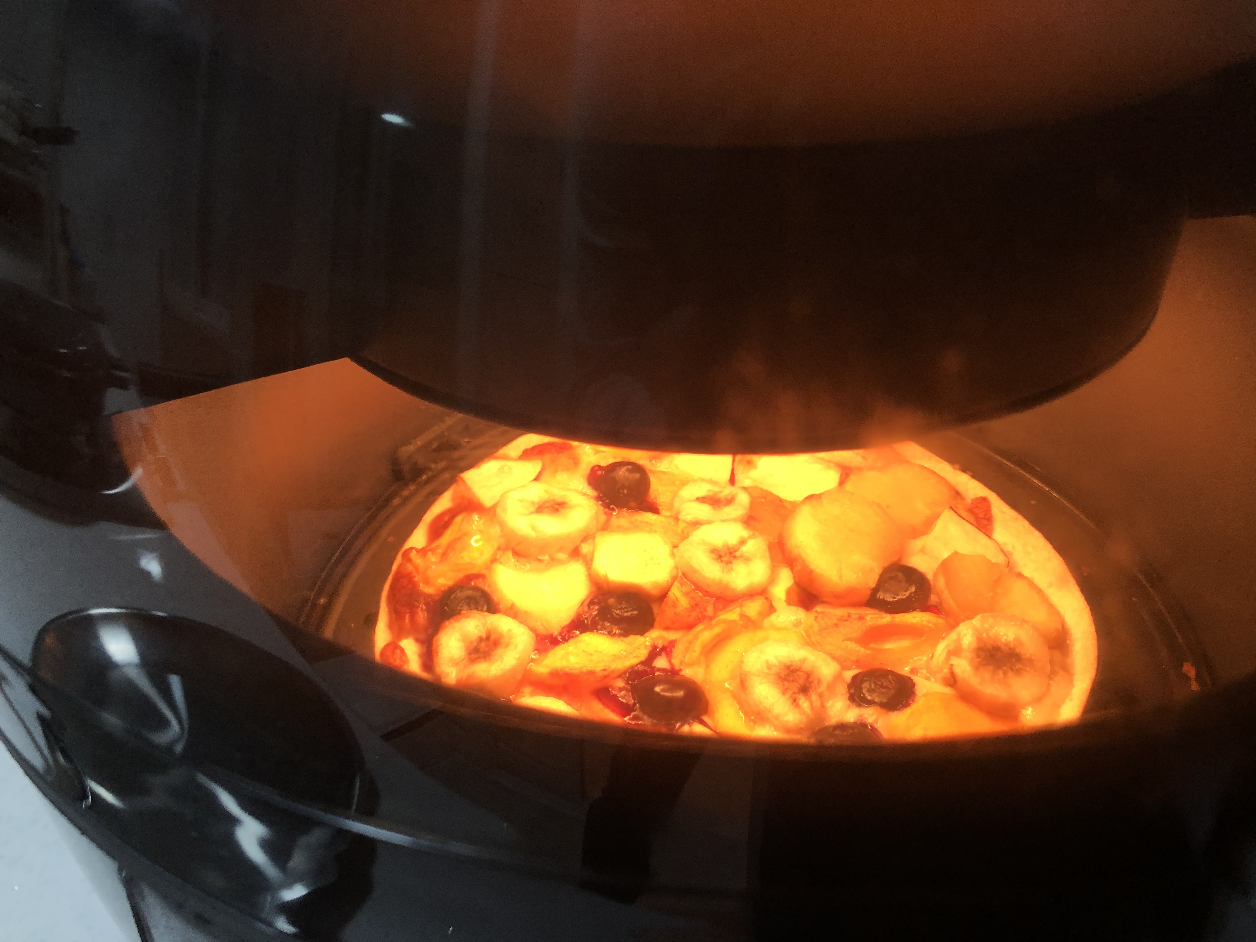 15분쯤 지났을 때는 치즈 위에 올려놓은 과일들도 잘 익었습니다. 단맛을 싫어하는 분들에게는 적합하지 않겠습니다만, 저는 단맛을 좋아하기 제 입맛에 딱 맞았습니다.