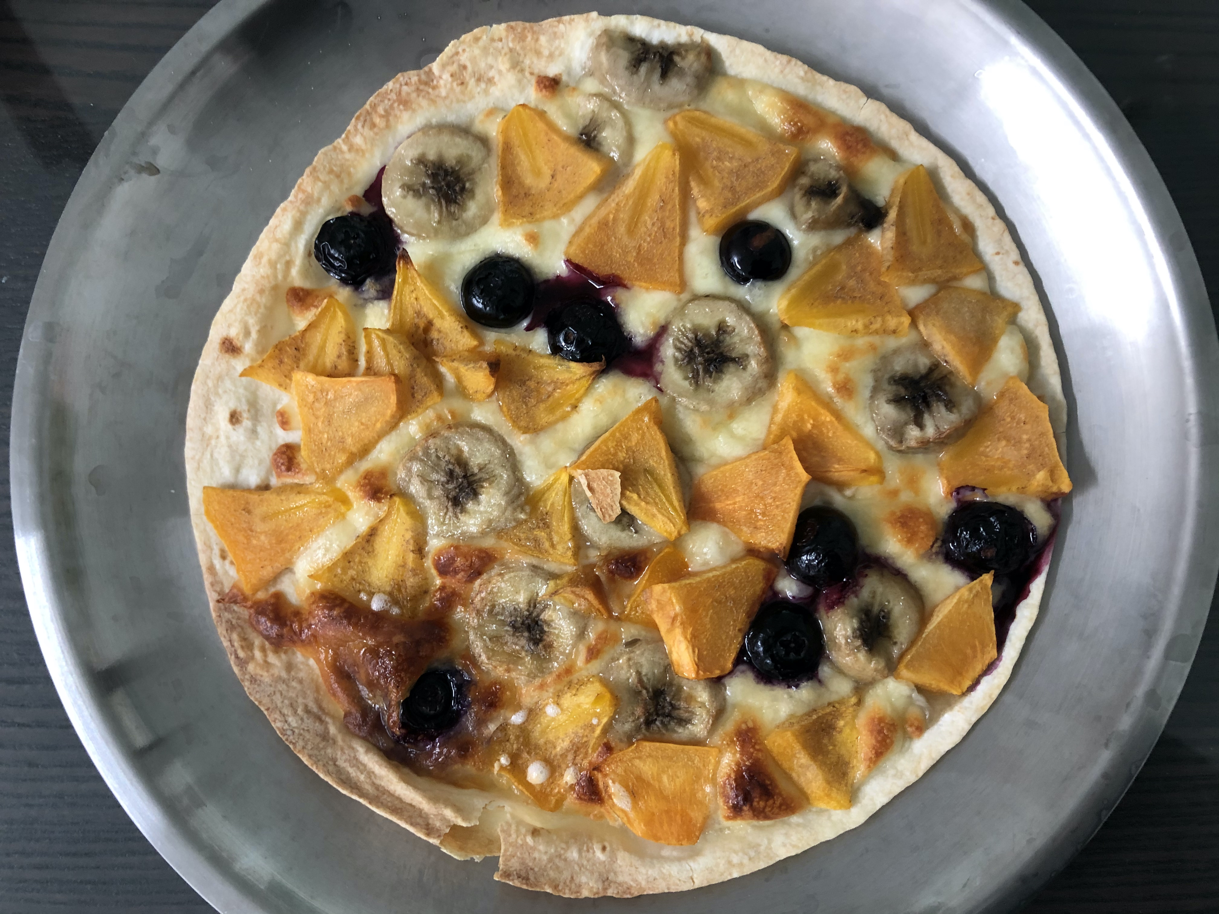엄청 단맛이 많이나는 꿀고구마(구운 고구마를 잘라서 올렸음)의 단맛 뿐만 아니라 바나나도 열을 가하면 단맛이 더 강해집니다. 블루베리는 단맛과 신맛이 함께 나서 상큼함을 더해주었구요. 잘 익은 단감도 엄청 달았습니다.