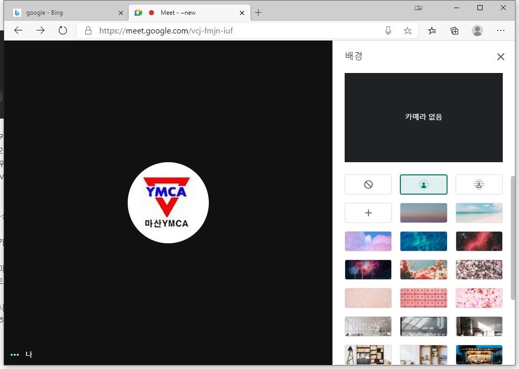 1) 구글 Meet의 전체 기능을 사용하려면 반드시 <크롬>을 사용하시고 마산YMCA에서 발급해 드린 임시 아이디로 로그인 하셔야 합니다.