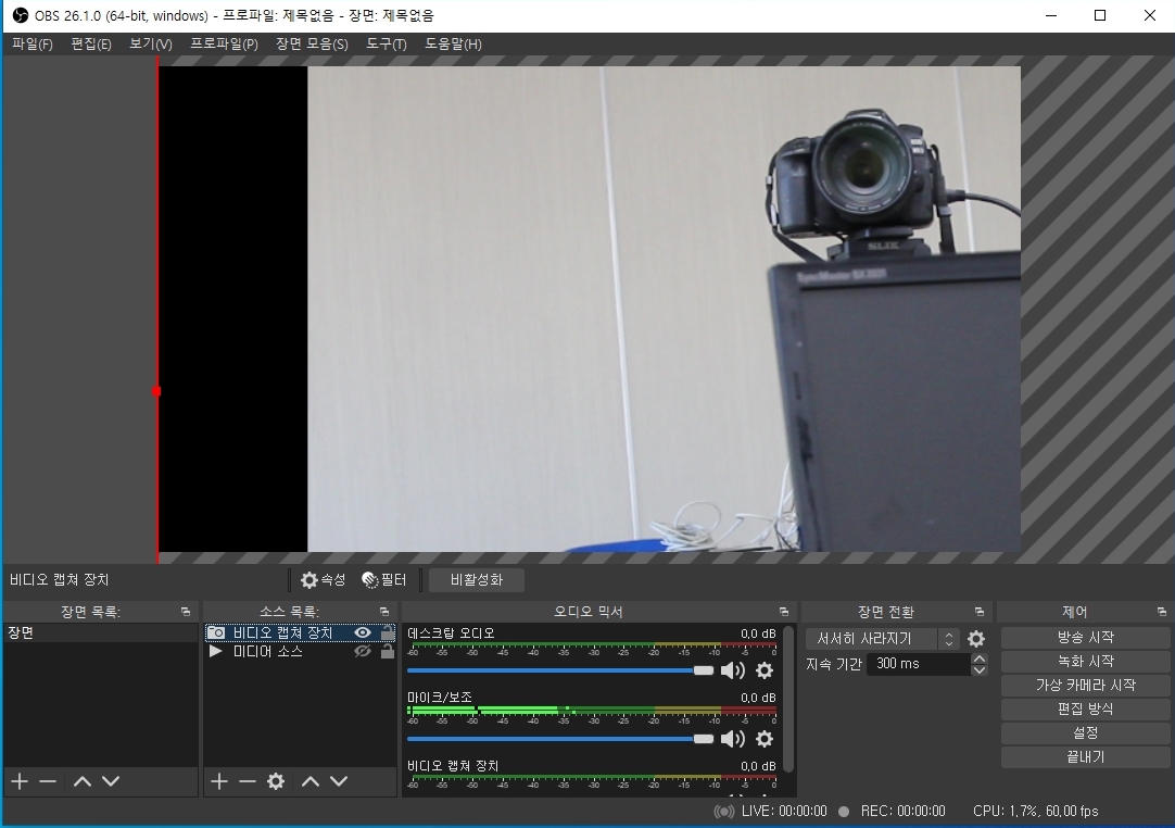 영상제작 경험이 없는 초보자가 여러대의 카메라를 캡쳐 장비를 거쳐 컴퓨터에 연결하여 녹화와 실시간 방송을 시도하였는데, 가장 먼저 부딪힌 난관은 소형 캠코더와 DSLR 카메라의 디스플레이 정보를 없애는 일이었습니다. 캠코더와 카메라를 컴퓨터에 연결하였더니 뷰파인더(혹은 액정)에 표시되는 촬영 정보들이 컴퓨터에 그대로 녹화가 되었기 때문입니다.