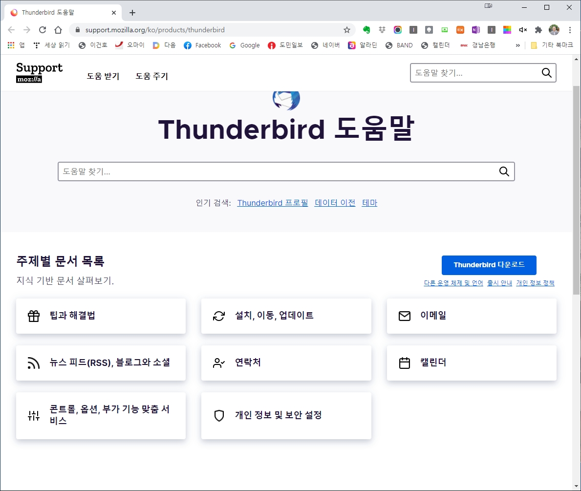단체 활동가들 대부분이 기관 메일 계정과 개인 메일 계정을 동시에 관리해야 하는데, 제가 사용해 본 프로그램 중에는 모질라 선더버드(Mozilla Thunderbird)가 괜찮은 것 같습니다. 모질라 선더버드(Mozilla Thunderbird)를 설치한 후에 도움말을 누르면 위 사진처럼 자세한 사용법이 잘 정리되어 있습니다.