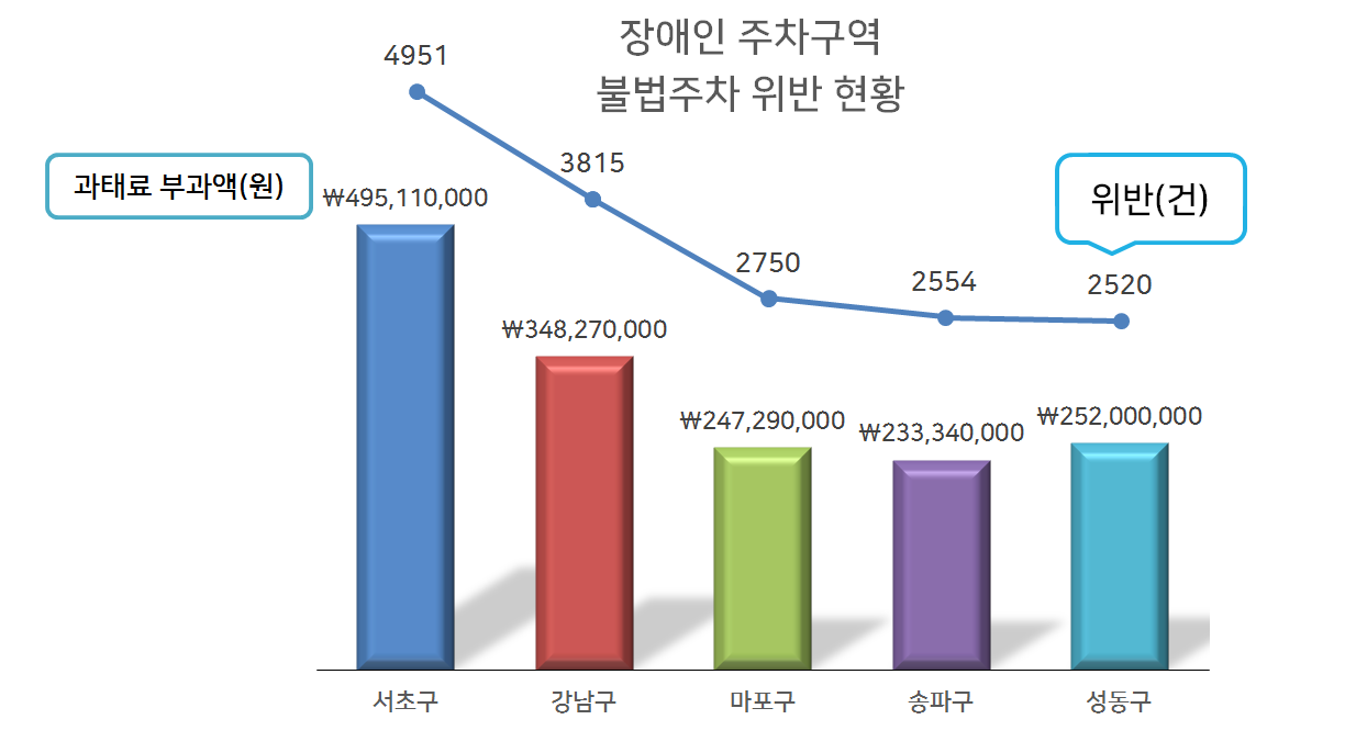 저의 경우 일시적이긴 하지만 거동이 불편한 장애인이 분명하였습니다만, ‘장애인 주차가능 스티커’가 없었기 때문에 현행 제도로는 장애인 주차구역에 차를 주차하면 과태료 10만원을 내도록 되어 있었습니다.