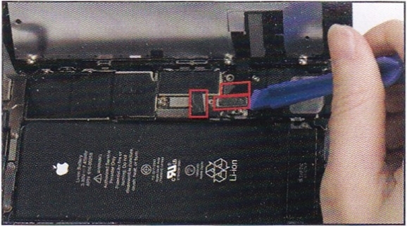 11. 이제부터 새 배터리를 끼우고 원상복구할 차례입니다. 제조사 설명과는 조금 다르게 일단 가장먼저 분해했던 역순으로 1)'TAPTIC ENGINE', 2) 카메라 모듈 3) LCD 커넥트, 홈버튼 커넥트를 제자리에 끼우고 나사를 결합합니다. (여기 있는 제조사 사진은 배터리부터 부착하였는데 좋은 방법이 아닙니다.