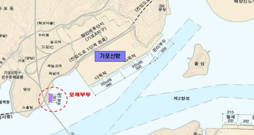 뿐만 아니라 모래 부두를 만들겠다고 하는 장소는 대규모 주거시설이 지어지고 있는 가포보금자리 주택 지구와 직선거리로 불과 300m 떨어져 있으며, 아직도 분양을 완료하지 못하고 있는 부영 아파트와도 그리 멀지 않은 곳입니다. 모래 부두가 조성되면 분진으로 시민들에게 피해가 갈 것은 불 보듯 뻔한 일이고 실제로 월영동 아파트 단지 입주민들의 모래부두 반대운동도 시작되었다고 합니다.