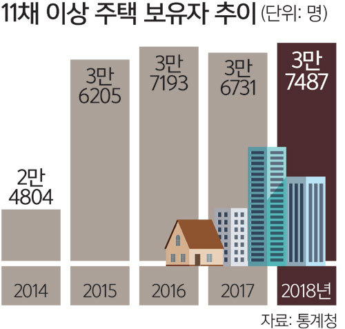 땜질식 처방만 계속되고 있다보니...작년 국정감사 기간에 나온 자료를 보면 주택을 국내 최다주택 보유자 A씨는 1806채나 집을 가지고 있다고 합니다. A씨는 2016년 1246가구를 소유하고 있었는데, 정부의 부동산 정책을 비웃기라도 하듯이 2017년에 239채, 2018년엔 319채를 추가로 사들였다고 합니다. 집을 많이 가진 10명이 가진 주택만 5598가구나 된다고 합니다 .