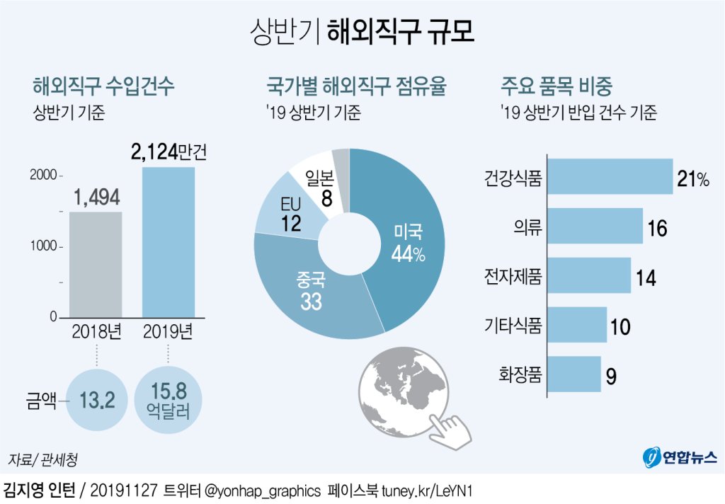 저의 경우도 과거에는 쿠팡, 옥션, 지마켓, 11번가 등의 인터넷 쇼핑몰을 주로 이용하다가 최근에는 미국 아마존, 일본 아마존 그리고 중국의 알리익스프레스와 알리바바까지 해외 직구가 점점 늘어나고 있습니다. 그리고 쿠팡이나 옥션 지마켓 11번가에서 판매하는 물건들도 자세히 보면 해외구매를 대행하는 경우도 많이 있어서 자연스럽게 해외구매가 늘어나게 되는 것 같습니다.