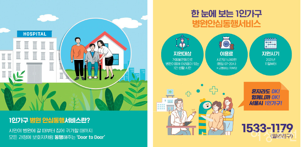 바로 이런 라이프스타일의 변화를 반영한 복지서비스가 서울시가 시작하는 ‘1인가구 병원 안심동행서비스’가 아닌가 싶습니다. 이 서비스는 서울 시민이 병원에 갈 때부터 집에 귀가 할때까지 모든 과정에 보호자처럼 동행해주는 ‘도어투도어 서비스’입니다.