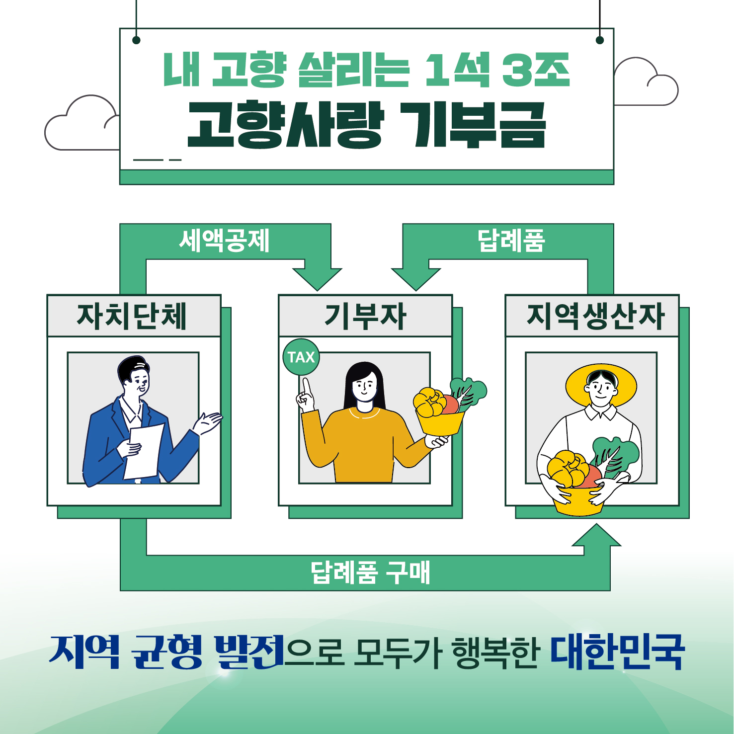 출산율 저하에 따른 인구 감소와 수도권으로의 인구 유출에 따른 인구 감소는 지역 소멸을 걱정해야 하는 단계까지 왔습니다. 오늘은 지역 소멸의 위기에 처한 지방 사람들이 머리를 맞대고 짜낸 고육지책이라고 할 수 있는 ‘고향사랑 기부제’에 관하여 함께 생각해보겠습니다.