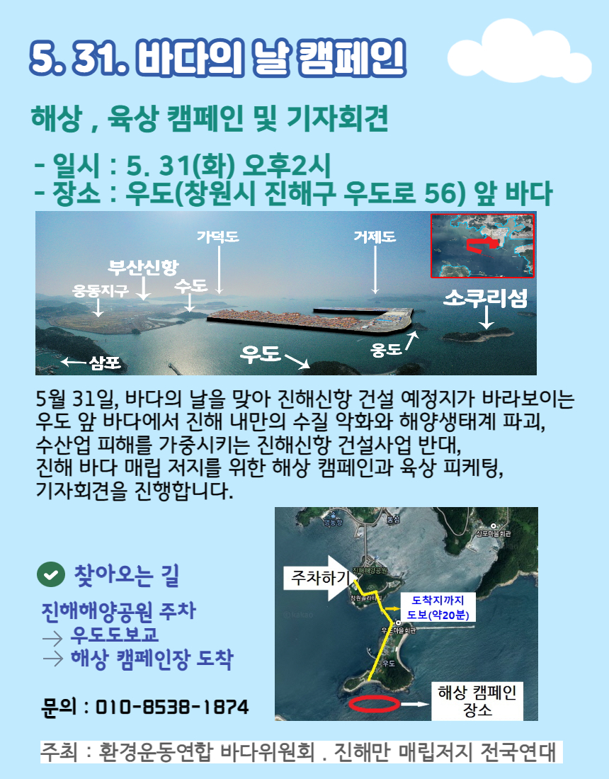 이런 대규모 항만이 꼭 필요한가 하는 문제도 따져봐야 하지만, 바다 물길을 가로막는 이런 어처구니 항만 계획을 세우는 중앙정부 공무원들이 지역을 얼마나 하찮게 생각하면 이런 무지막지한 계획을 세울 수 있는지 묻고 싶은 심정입니다. 백번을 양보해서 항만이 필요하다 하더라도 위치과 방향 등 설계가 바뀌지 않는다면 진해만과 마산만은 또 다시 죽음의 바다가 될지 모르는 상황입니다.