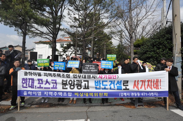 지역 주택조합피해자들은 또 있습니다. 지난해 5월에는 창원동읍지역주택조합에서 사고가 있었는데요. 조합장과 업무대행사 대표가 짜고 조합원들에게 164억원의 피해를 준 사건이 있었습니다. 조합장이 자신이 소유한 건설사와 아들명의로 사업지를 98억 여원에 구입하여 조합원들에게 255억에 판는 수법으로 부당한 이익을 취하였으며, 조합원 47명에게는 중도금 대출사기까지 저질러 20억 7800만원의 피해를 입혔다고 합니다.