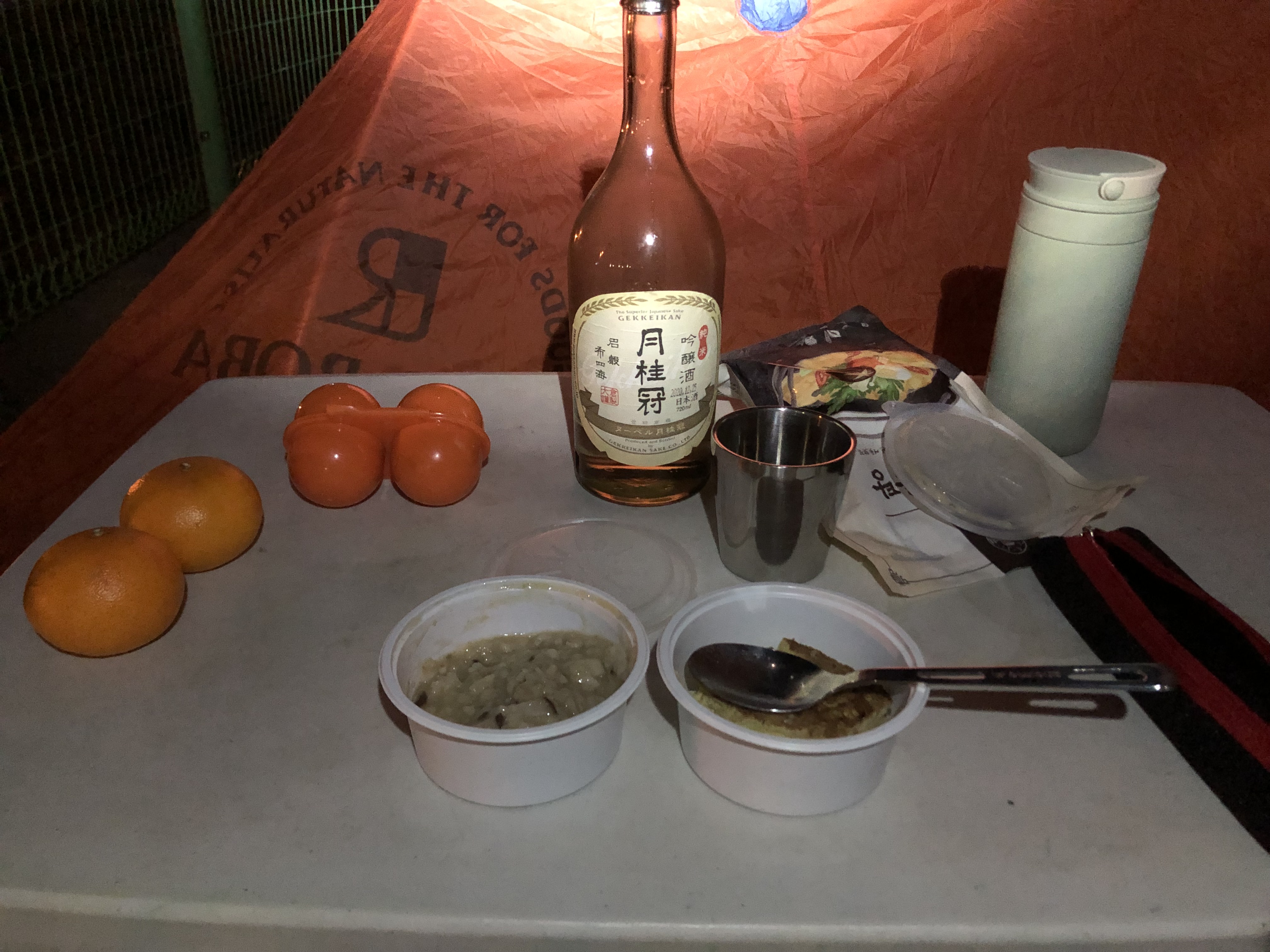 4) 먹는 준비: 아침은 안 먹기 때문에 저녁 한끼만 준비하면 됩니다. 밥 한 공기, 밑반찬 조금, 컵라면 혹은 어묵탕 그리고 약간의 견과류나 과일이면 좋겠더군요. 등산 갈 때 쓰는 휴대용 술병에 사캐를 담아가면 어묵탕과 딱 어울리고 짐도 별로 늘어나지 않을 것 같습니다.