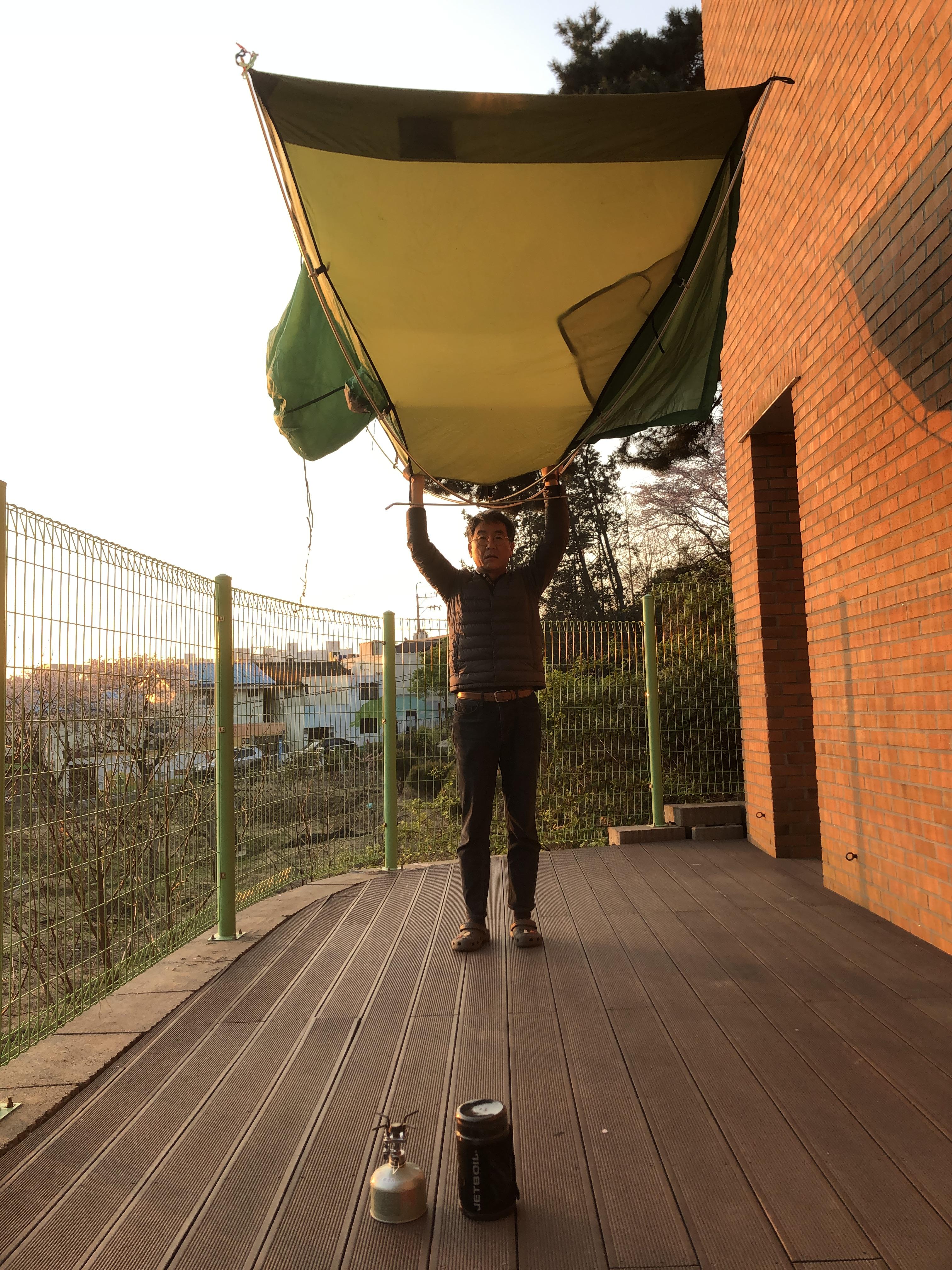 지난 주말 무학산 자락에 있는 YMCA 회관 앞마당 데크에서 백패킹 연습을 시작하였습니다. 6년 전에 새회관에 입주할 때부터 앞마당 데크에서 캠핑을 하면 좋겠다는 생각을 하였는데, 한 번도 실행을 못하하가 백패킹 연습 장소로 텐트를 쳤습니다.
