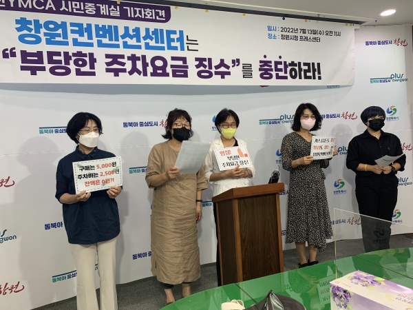 지난 7월 13일 수요일에 마산YMCA 시민중계실 회원들이 창원시청기자실에서 ‘창원컨벤션센터의 부당한 주차요금 징수 중단’을 촉구하는 기자회견을 하였습니다. 오늘은 창원컨벤션센터 주차요금 제도의 문제점과 다른 지역 사례를 함께 생각해보겠습니다.