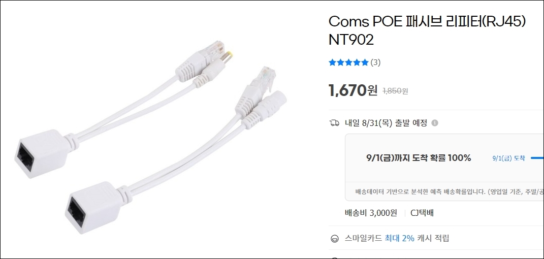 스위칭 허브나 공유기 뿐만 아니라 인터넷 케이블을 연결해야 하는 CCTV 등의 장비를 연결할 때, PEO 장비를 사용하면 전원과 인터넷 신호를 동시에 보낼 수 있더군요.  아래 사진과 같이 연결하면 전기 콘센트가 없는 곳에도 RJ-45 랜케이블을 통해 장비를 연결할 수 있습니다.