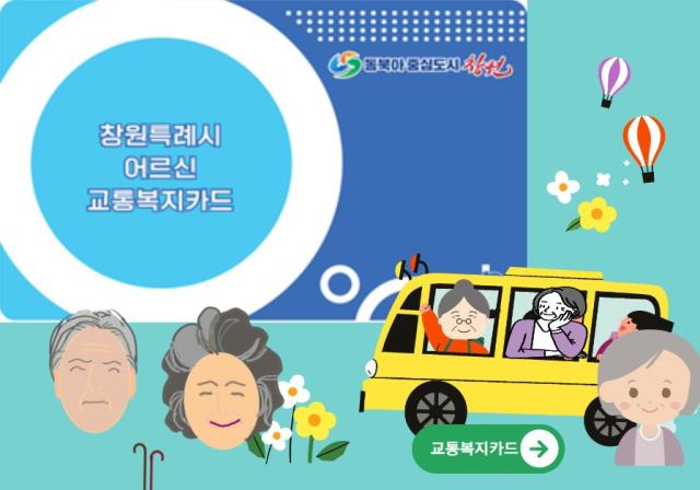 창원시가 노인의 날인 오늘부터 75세 이상 어르신들에게 발급하는 <교통복지 카드> 서비스를 시작합니다. 여러시민단체들이 대중교통 활성화를 위해 시내버스 무상요금제, 시내버스 정액요금제 등을 주장해 왔는데, 창원시가 그 첫 단계로 75세 이상 어르신을 대상으로 교통복지 카드를 발급하는데요. 오늘은 창원시 교통복지카드에 대하여 함께 생각해보겠습니다.