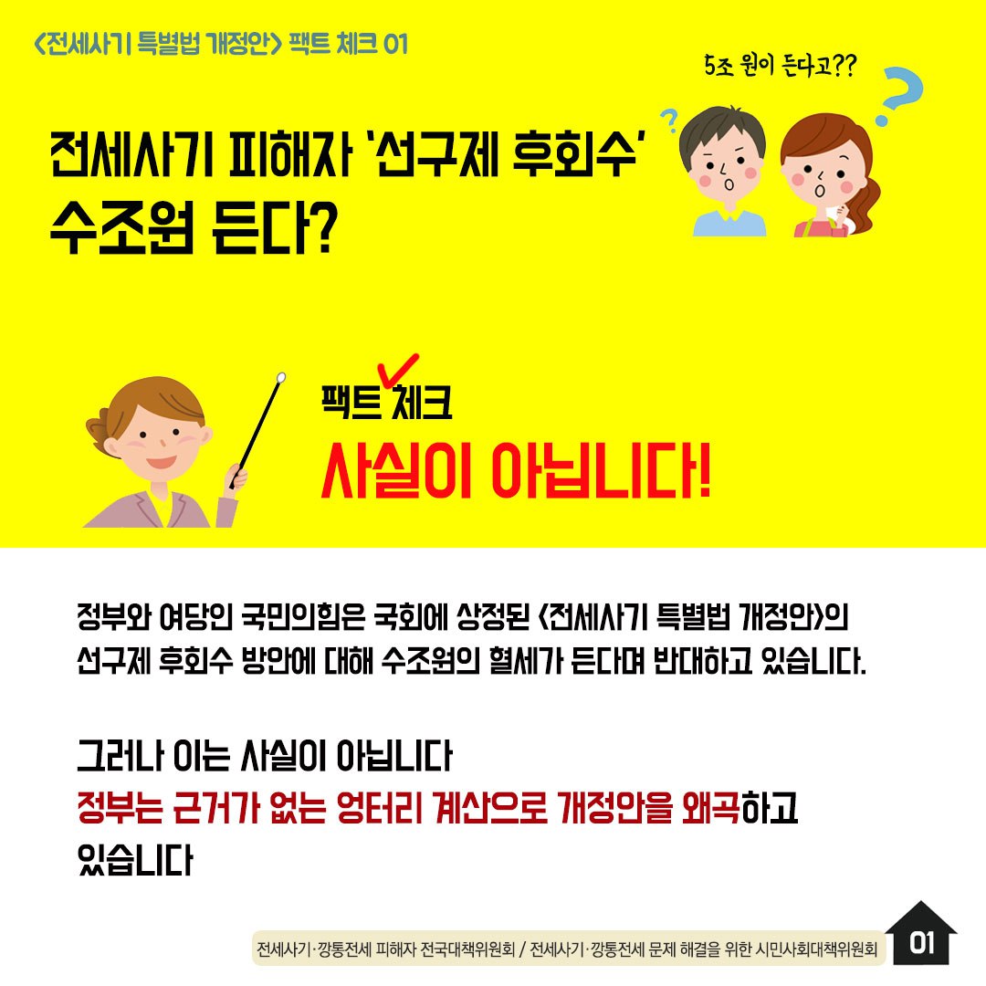 지난 방송 후에 전세 사기 피해나 깡통 전세 피해를 왜 세금으로 지원해야 하는지 모르겠다는 말씀을 주신 분이 계셨는데요. 정부가 전세 사기나 깡통 전세 피해를 당한 분들은 도와야 하는 것은 그분들만의 잘못이 아니기 때문입니다. 저는 태풍이나 지진, 화재 등으로 집단적 피해를 당한 지역을 긴급재난지역으로 선포하고 국가가 최우선으로 지원하는 것과 다르지 않은 일이라고 생각합니다. 전세 사기 피해자나 깡통 전세 피해자들이 전국에 흩어져 있기 때문에 그 심각성이 태풍피해처럼 한 눈에 드러나지 않을 뿐이지 피하기 어려운 갑작스런 재난을 당한 것은 매한가지라고 봅니다.