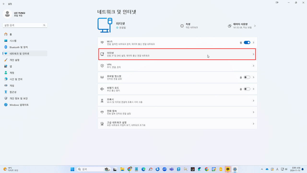2. 다음 화면이 나오면 이더넷을 선택합니다.