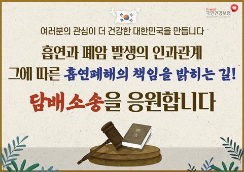 담배 소송은 흡연피해자를 직접 구제하는 것은 아니지만, 연간 3조가 넘는 흡연 관련 진료비에 대한 담배회사의 책임을 묻고, 건강보험 재정에 대한 국민부담을 줄일 수 있는 소송이라고 생각됩니다. 2014년 시작된 담배소송이 10년이나 되는 긴 시간 때문에 여론과 국민들의 주목을 받지 못하고 있는데요. 올해 하반기로 예정된 2심 판결에 많은 관심을 가져주셨으면 좋겠습니다.