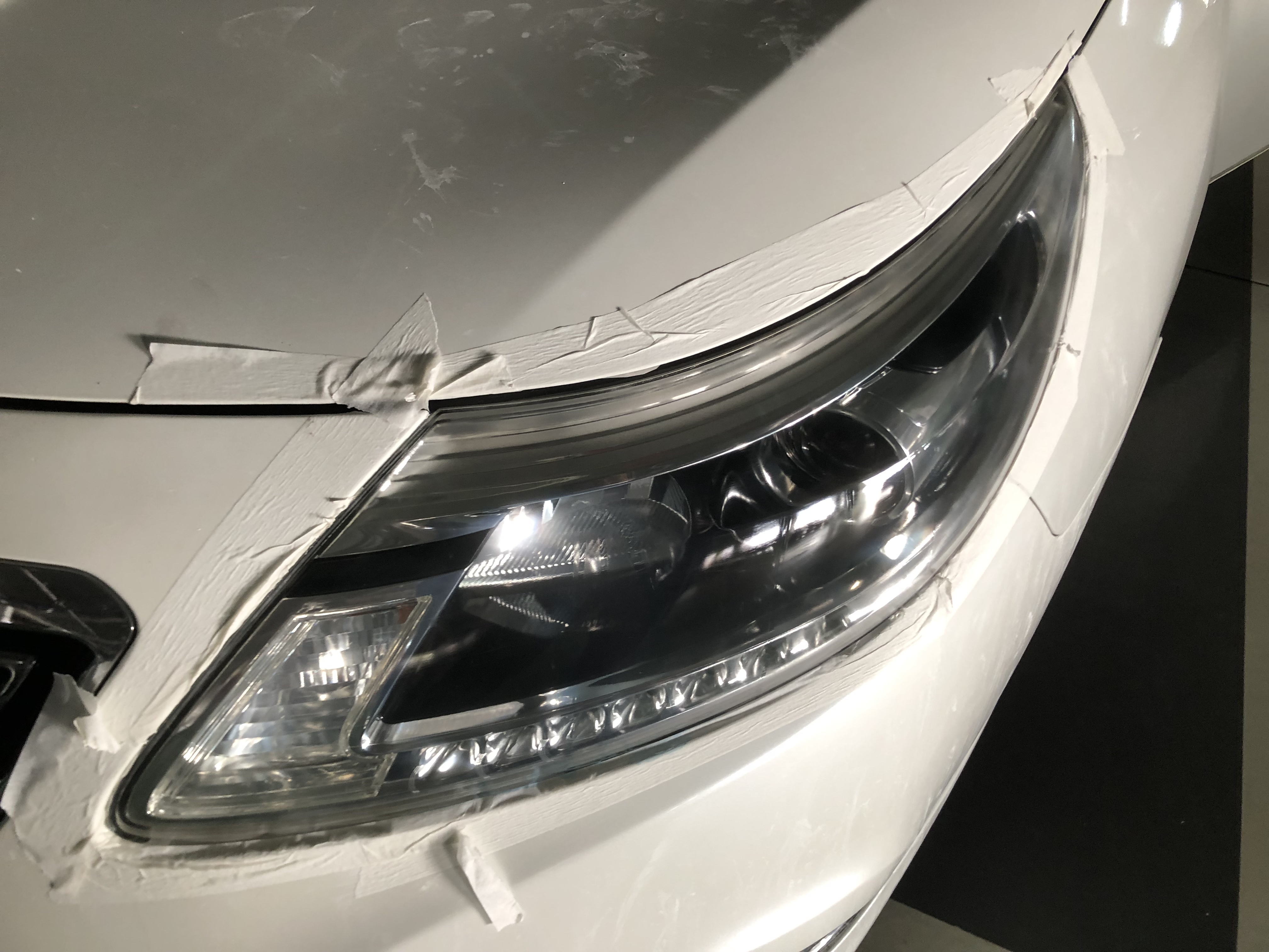 1. 훈증 용액은 스텐컵에 1/5만 붓고 작업을 합니다. 전조등 윗부분 작업을 하려면 컵을 많이 기울여야 하는데 양이 많으면 용액시 새어 나올 수 있습니다. 저는 용액이 새어나와 미세한 줄이 생겼습니다.(사진으로는 확인이 어렵지만 아주 가까이서 보면 표가 남)