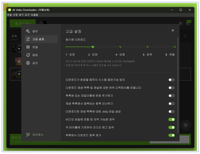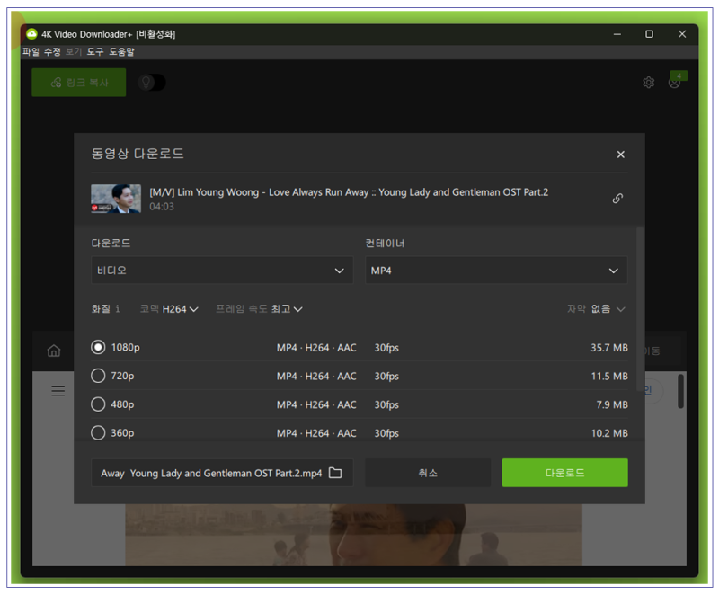 가끔 새로운 버전을 다운 받지 않으면 유튜브에서 다운로더가 안 될 때가 있습니다만, 꾸준히 업데이트만 하면 문제 없이 사용이 가능합니다.