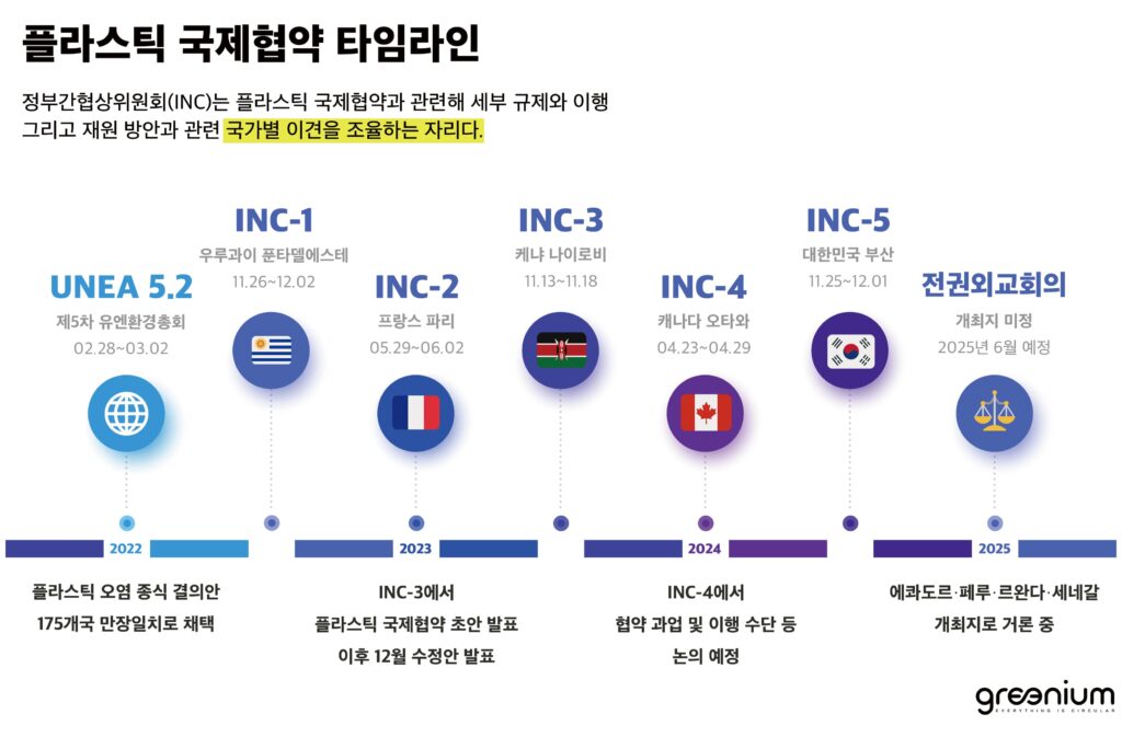 지난달 방송에서 부산 11월 25일부터 일주일 간 부산 백스코에서 국제플라스틱 협약 체결을 위한 제5차 정부간협상위원회(INC-5)가 개최된다는 소식을 전해드렸는데요. 이번 협상위원회는 세계 177개국 정부대표단과 이해관계자, NGO 활동가 등 3800여명이 참가하는 엄청난 규모의 국제 협상이었습니다. 12월 1일 종료 예정이었던 회의를 연장하여 2일 새벽 3시까지 진행하였지만, 국가 간 이견으로 합의에 이르지 못하였습니다.