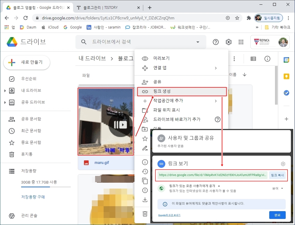 구글 드라이브를 외부 이미지(사진) 링크 저장소로 활용하기