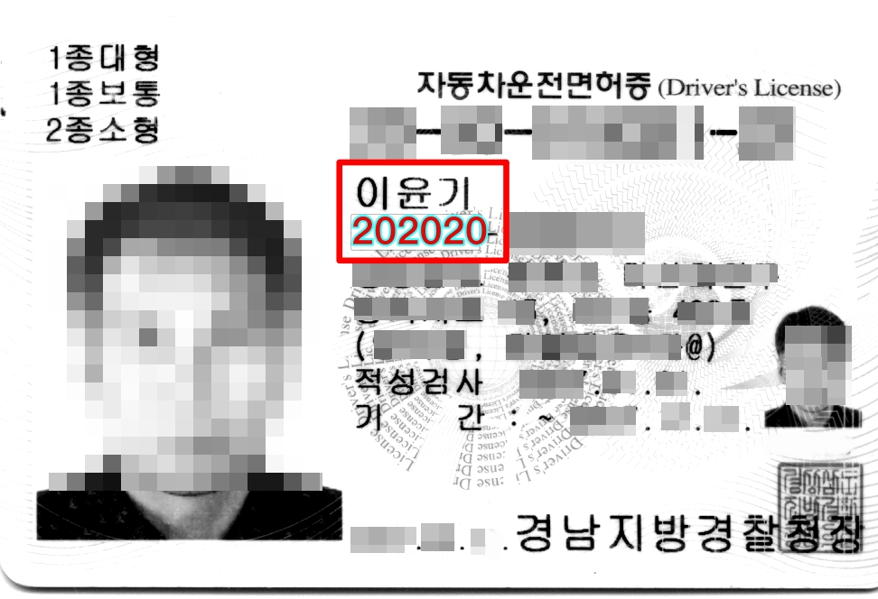 네 번째 접수 때는 <신분증 내 개인 정부 유출> 즉 신분증 마스킹 처리가 안 되었다고 다시 서류를 제출하라는 메일을 받았습니다. 그래서 앞서 설명 드린 것 처럼 이름과 생년월일 빼고는 모두 마스킹 처리하여 다시 제출하였습니다.