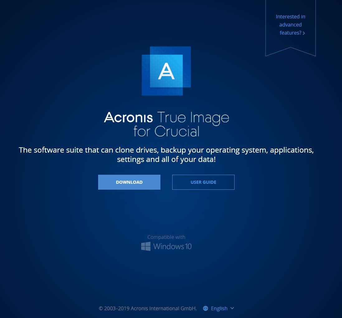 우선 크루셜 홈페이지에서 마이그레이션 프로그램을 다운 받아야 합니다. (www.acronis.com/en-sg/promotion/CrucialHD-download/)