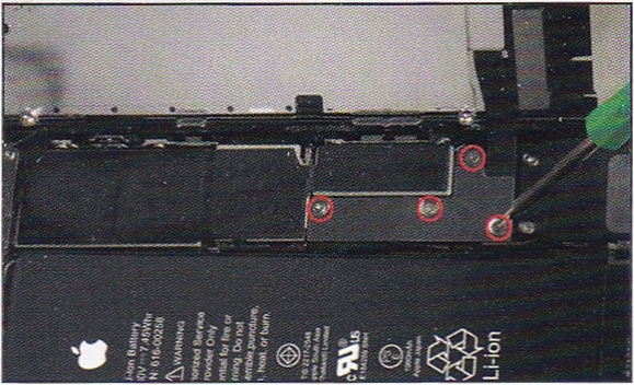 11. 이제부터 새 배터리를 끼우고 원상복구할 차례입니다. 제조사 설명과는 조금 다르게 일단 가장먼저 분해했던 역순으로 1)'TAPTIC ENGINE', 2) 카메라 모듈 3) LCD 커넥트, 홈버튼 커넥트를 제자리에 끼우고 나사를 결합합니다. (여기 있는 제조사 사진은 배터리부터 부착하였는데 좋은 방법이 아닙니다.