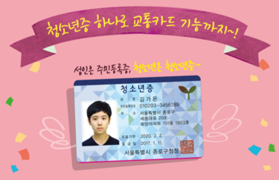 사실 청소년증을 발급받으면 크고 작은 혜택도 많이 누릴 수 있습니다. 우선 청소년증을 발급 받을 때 교통카드 기능을 추가할 수 있어 청소년 요금을 적용받을 수 있습니다. 청소년증이 있으면 철도 이용료는 10~30%를 할인 받을 수 있고, 왕궁, 고궁 등 입자료 50% 할인, 자연휴양림 50%, 영화관 2000원 내외 할인, 유원지 및 공영장 30~50% 할인, 놀이공원, 체육시설 할인 등 적지 않은 혜택을 누릴 수 있습니다. 당연히 발급 비용은 무료이고, 한 가지 아쉬운 건 주민등록증처럼 정부가 인정하는 신분증이라 발급 기간이 4주 정도 걸린다는 것입니다.