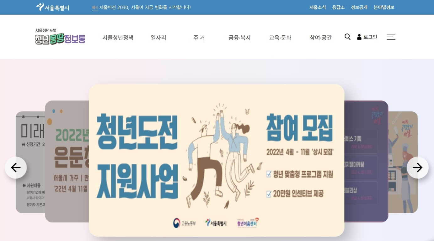우선 가장 최근에 서울시가 내놓은 새로운 청년 정책부터 소개해드리겠습니다. 서울시는 내년부터 소득과 재산에 관계없이 1년에 교통비로 50만원 이상 지출하는 만 19~24세의 모든 청년들에게 연간 10만원의 대중교통요금을 마일리지 방식으로 지원합니다. 연간 10만원으로 교통비 지원이 되겠냐고 생각하시는 분들도 있겠지만, 중요한 것은 19~24세 모든 청년들에게 신청만 하면 10만원의 교통비를 지원하겠다는 발상이라고 생각합니다.