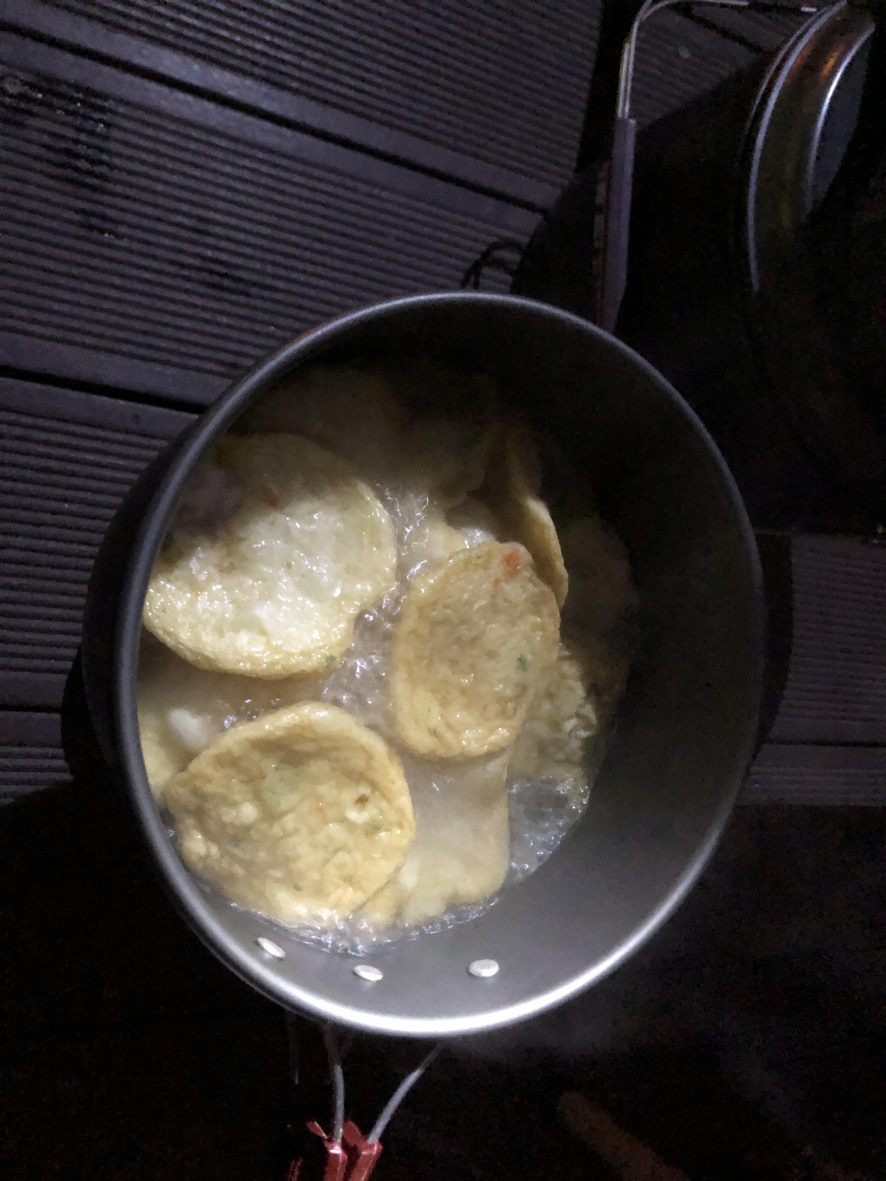 날씨가 점점 추워지길래 냉동실에서 꺼내 온 어묵탕을 끊였습니다. 라면처럼 스프가 들어 있어 물만 있으면 간단하게 끊일 수 있는 어묵탕인데, 백패킹 실전에서 요긴하게 활용할 수 있겠더군요. 이미 저녁을 먹고 가리비까지 먹은터라 어묵탕은 반 밖에 못먹고 다시 집으로 가져가야 했습니다. 혼자 백패킹을 할 때는 어묵탕 1/2봉지 정도면 적당하겠더군요.