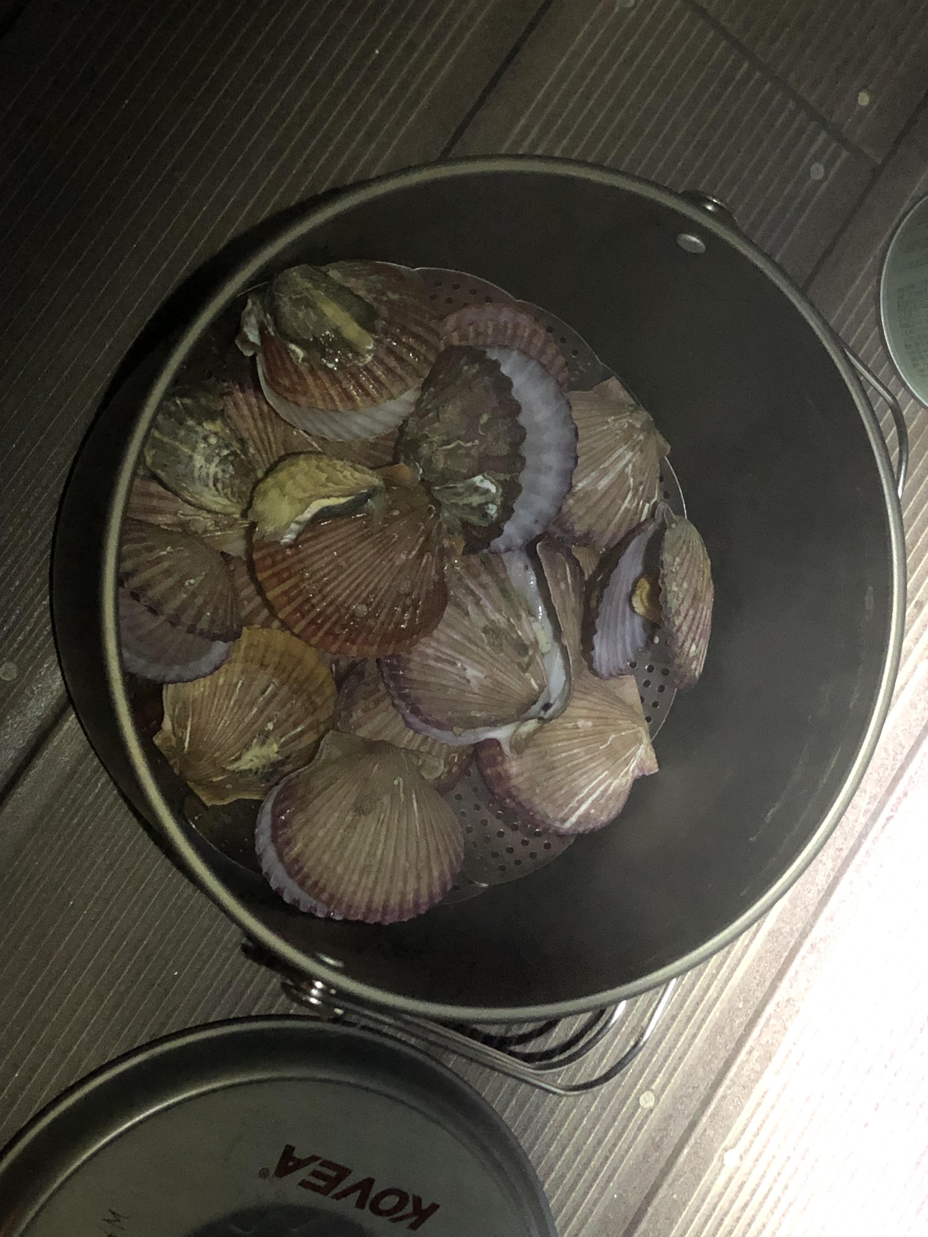 이 날은 연습하는 날이라 차에 버너와 코펠을 싣고 왔기 때문에 호사를 부렸습니다. 아침에 마트에서 4500원 주고 사온 '가리비'를 물만 붓고 쪘는데, 제철이라 그런지 얼마나 달던지요. 가리비가 달다고 하면 안 믿는 분들도 있겠지만, 코펠에 소반을 넣고 쪘더니 진짜 단맛이 났습니다. 혼자 음악을 들으면서 가리비찜을 안주 삼아 사캐 두어 잔을 마셨습니다.