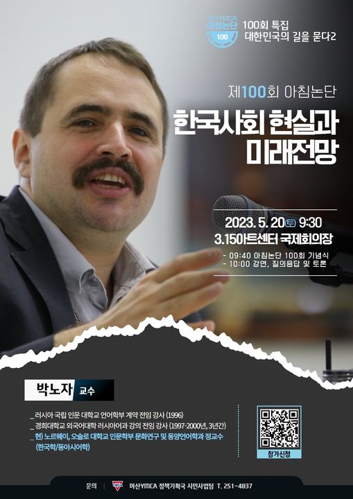 최근 제가 일하는 마산YMCA에서 사회학자, 역사학자, 정치학자를 차례로 모셔서 ‘대한민국의 길을 묻다’라는 주제로 100회 기념, 특집 <아침논단>을 3회 연속으로 진행하였는데요. 오늘은 세 분 학자의 강연을 중심으로 대한민국의 미래를 함께 생각해보겠습니다.