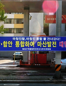 지난 9월 30일, 마산, 창원, 진해, 함안이 각각 행정통합 신청서를 제출하였습니다. 각 지자체 마다 이해관계가 다른 때문인지 저마다 다양한 통합 신청을 하였다고 합니다. 어쩌면 각 지자체마다 이해관계가 다른 것은 지극히 당연한 일이기도 합니다. 그런데, 통합 신청 딱 하루 만에 "마창진함, 마창진 통합' 물 건너갔다"는 현수막이 나붙었습니다. 웬일인가 궁금해서 인터넷 검색을 해보니 마산, 함안지역 통합 추진 단체들이 기자회견도 하였더군요. 마산·함안지역 행정통합추진 4개 민간단체가 마산·창원·진해·함안 통합의 현실적 대안인 '마산·함안' 통합을 촉구하고 나섰다. ㈔마산발전범시민협의회(회장 김형성), 행정구역통합추진 마산시준비위원회(위원장 이학진), 행정구역통합추진 함안군준비위원회(위원장 하성식), 행..