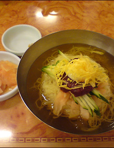 꿩대신 닭, 냉면 보다 맛있는 밀면 ▲ 밀면 보통 한 그릇 입니다. 참 소박합니다. 꿩대신 닭이라고, 밀면은 한국전쟁 통에 냉면대신 만들어 먹기 시작한 음식이라고 합니다. 전쟁 때 피난 내려온 이북에서 내려온 사람들이 사람들이 고향에서 먹던 냉면이 먹고 싶었지만, 전쟁통에 메밀을 구할 수 없었기 때문에 구호품으로 나온 밀가루를 이용해서 냉면처럼 만들어 먹었던 것이 바로 '밀면'이라고 합니다. 1960년대 후반 부산에서 가야에서 문을 연 밀면집에서 새콤 달콤 쫄깃한 밀면으로 성공을 거두면서 지금처럼 대중화 된 음식이 되었다고 합니다. 제가 사는 마산에도 밀면을 잘 하는 집이 있습니다. 역사가 얼마나 되었는지는 모르지만 마흔을 앞두고 있는 제 동생이 학창시절부터 있었다고 말하는 걸 보니 20년은 된 듯 합니다. 마산 석전동에 있는 이 집은 맛.. 2009. 8. 1.