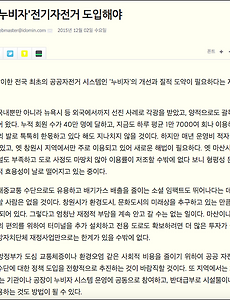 728x90 반응형 스페인1 전기 자전거 도입이 대안이라고? 나는 반대 ! 오늘 아침 경남도민일보 사설에 라는 사설이 실렸습니다. 하루 전 날 스페인 산세바스티안이라는 도시의 전기자전거를 취재하고 쓴 기사 이라는 기사에서 전기 자전거를 제안하더니 곧바로 사설에까지 을 제안 하였더군요. 아침 신문을 보자마자 블로그 포스팅을 하게 된 것은 솔직히 자기네 신문사에서 스페인 취재까지 하고 왔기 때문에 깊은 고민없이 경솔(?)하게 누비자 전기 자전거 도입을 주장 하였다는 생각이 들었기 때문입니다. 문제 진단을 이렇습니다. 누비자 이용률의 70~80%가 옛 창원이고, 마산과 진해는 이용률이 낮다는 것이고, 옛 창원은 어디를 가더라도 공공자전거 터미널이 눈에 보일 정도로 조밀하게 분포돼 있고 지면 또한 평평해 자전거 이용을 많이 하지만, 옛 마산과 진해는 어떨까. 터미널 수가 적고 누비자 .. 2015. 12. 2. 이전 1 다음 728x90 반응형